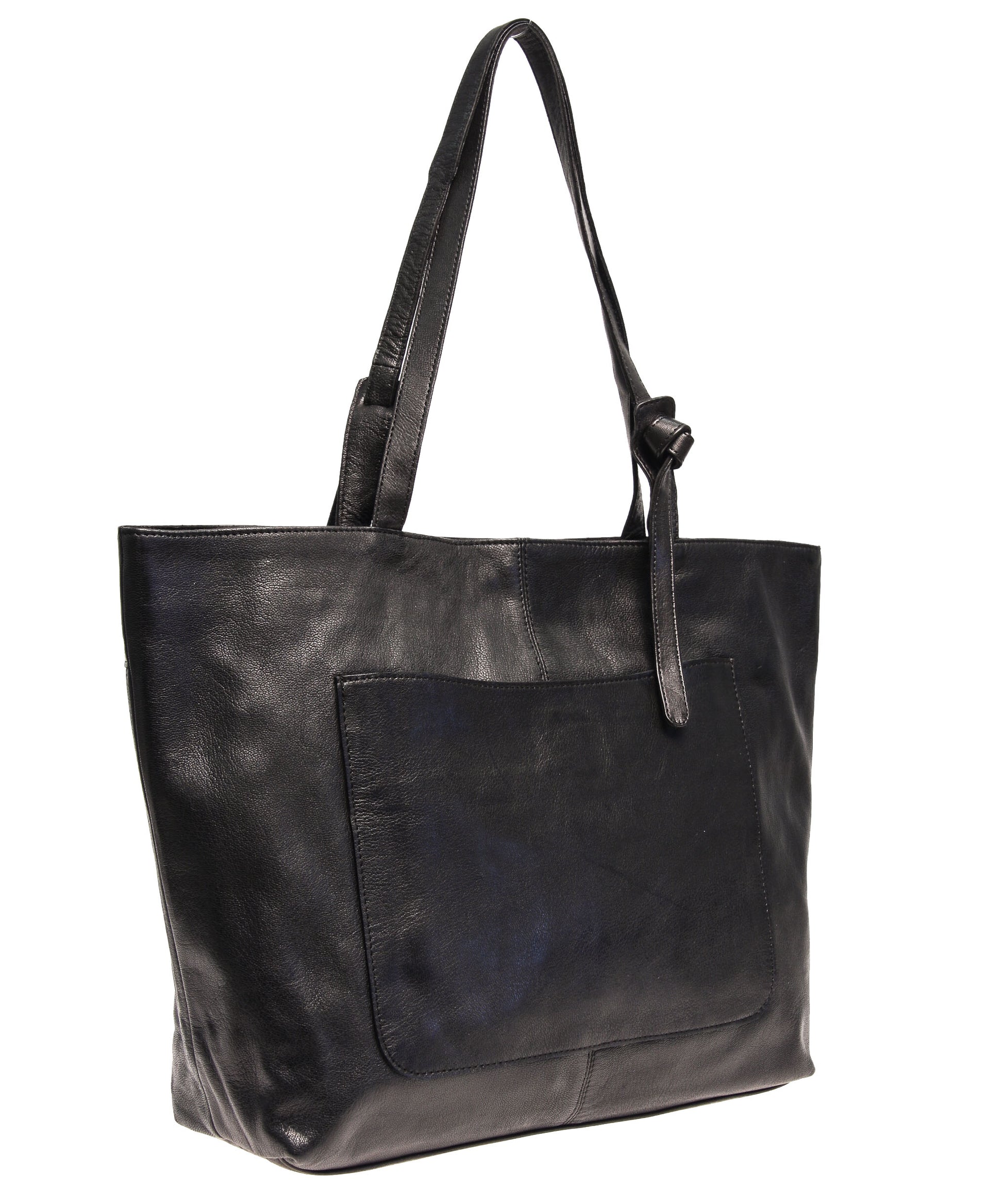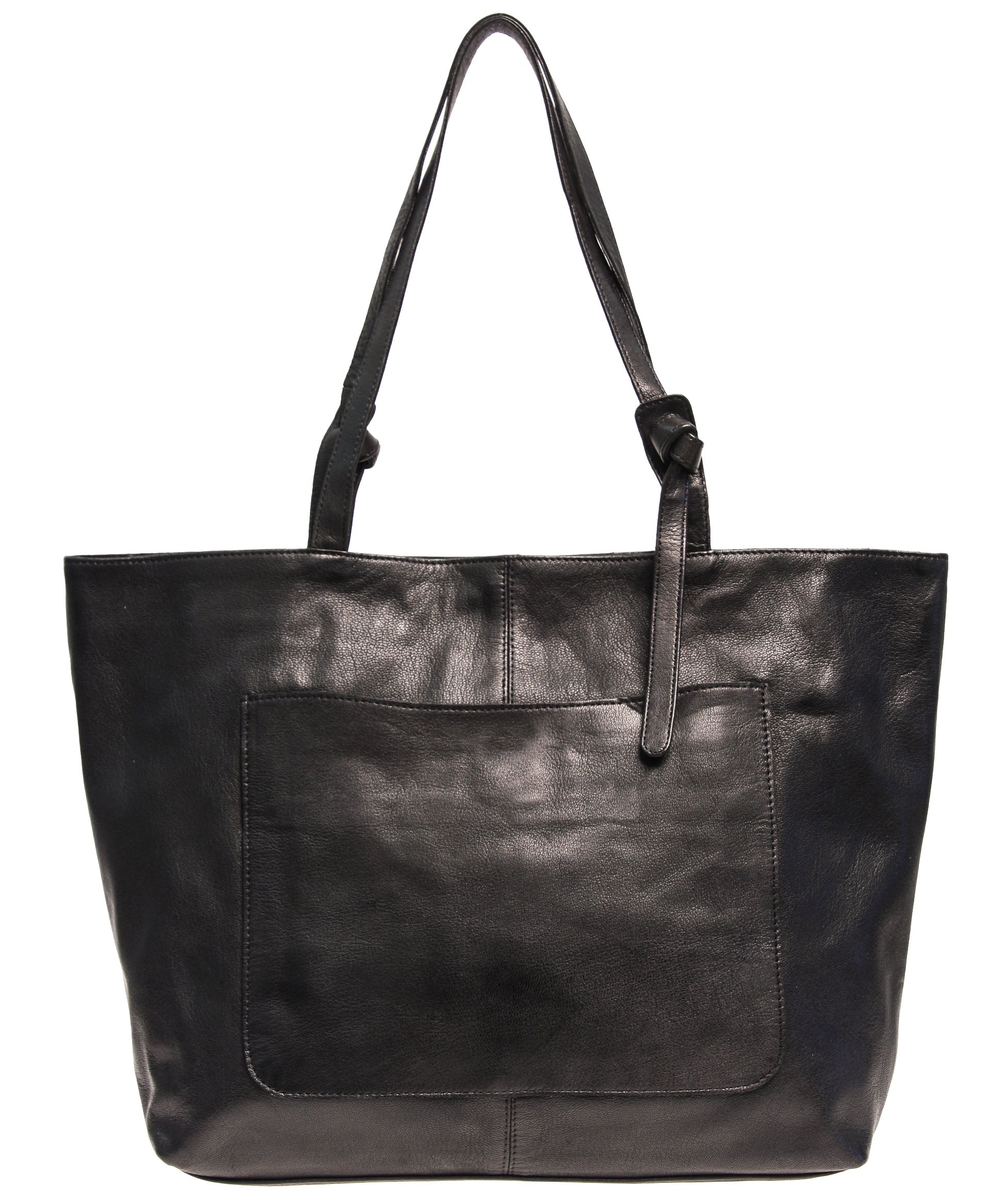 Tano EZ Tote in buttery soft full grain aniline leather. Perfect for work running around town. Adjustable handles with knot detail. Oversized easy access front pocket with hidden magnetic closure. Top zip closure with secondary hidden mag closure in case you want the added convenience of not using the zip. Single leather framed interior zip pocket plus two interior leather cuffed slip pockets - perfect for your phone. Brass hardware fittings.